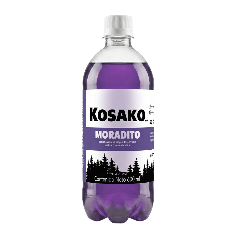 Kosako es una bebida alcohólica de baja graduación 5.5% Alc Vol lista para tomarse (RTD), de un refrescante sabor Moradito.
